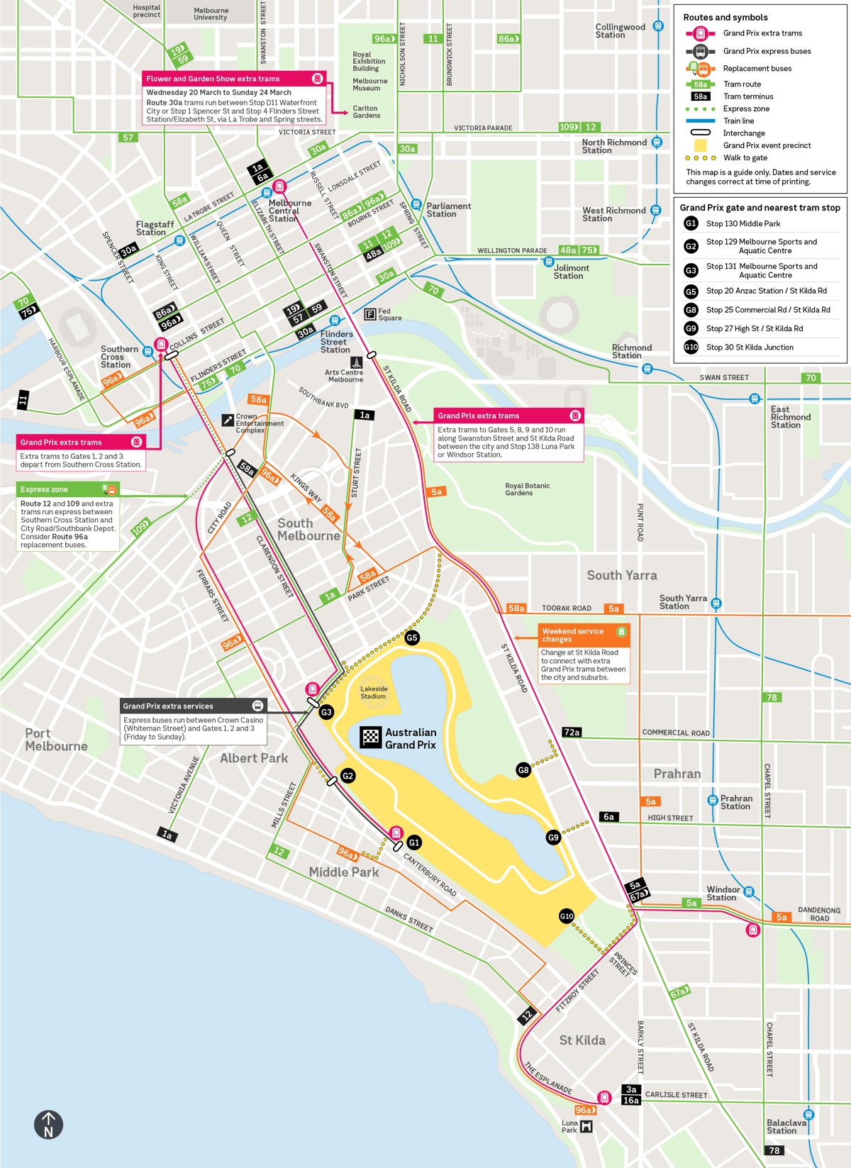 - Extra trams run express between Stop 122 Southern Cross Station and Gate 3